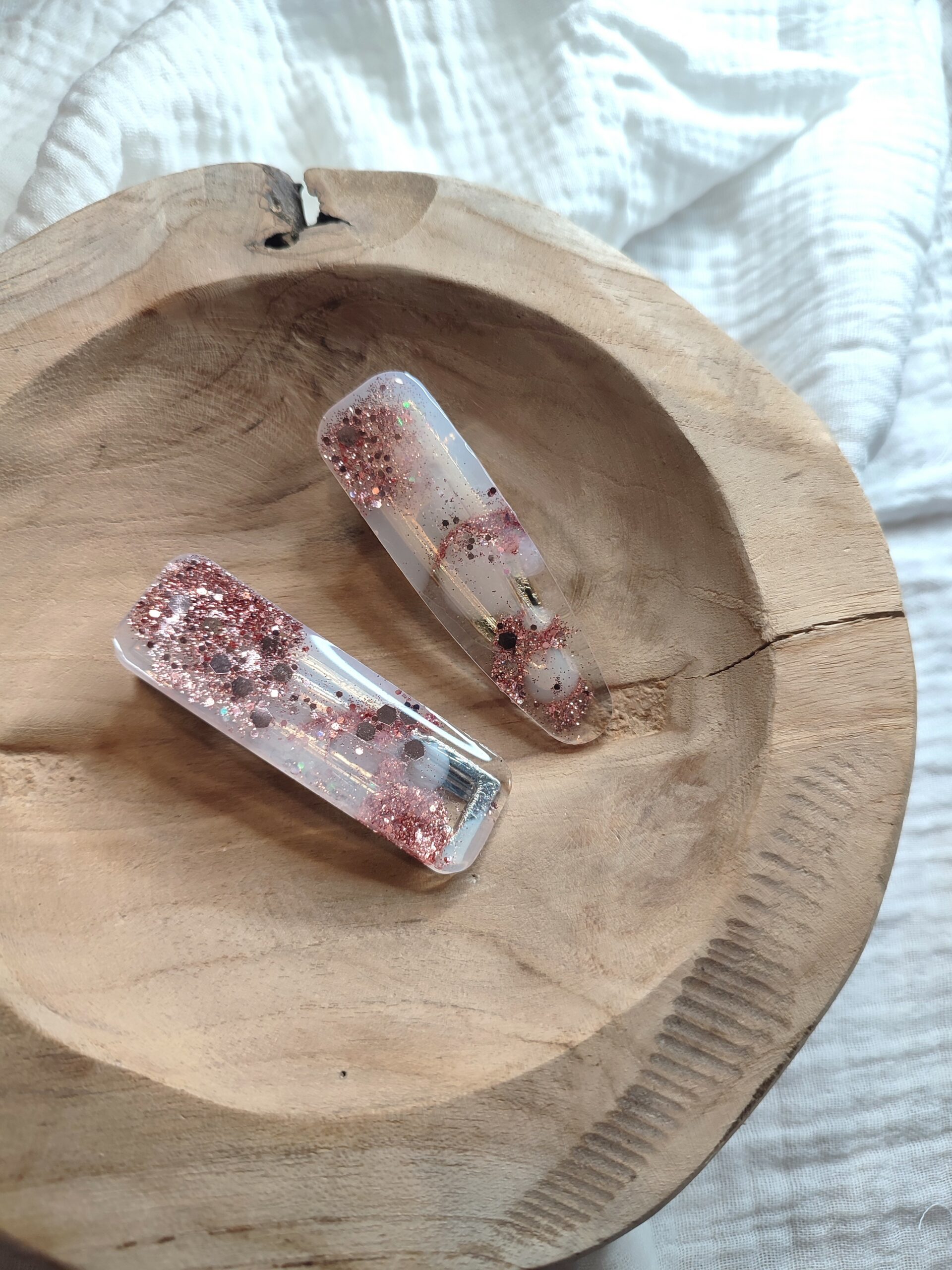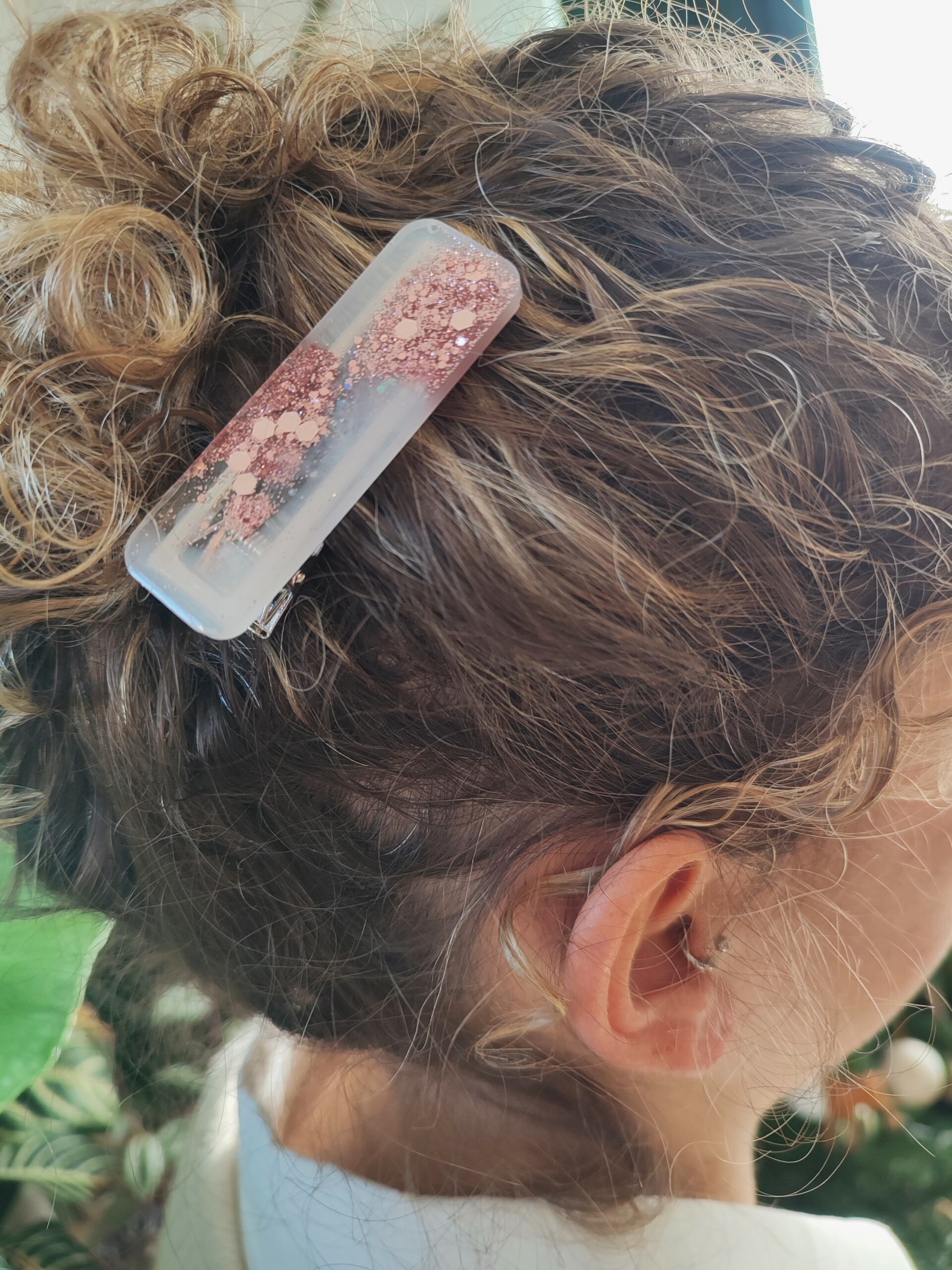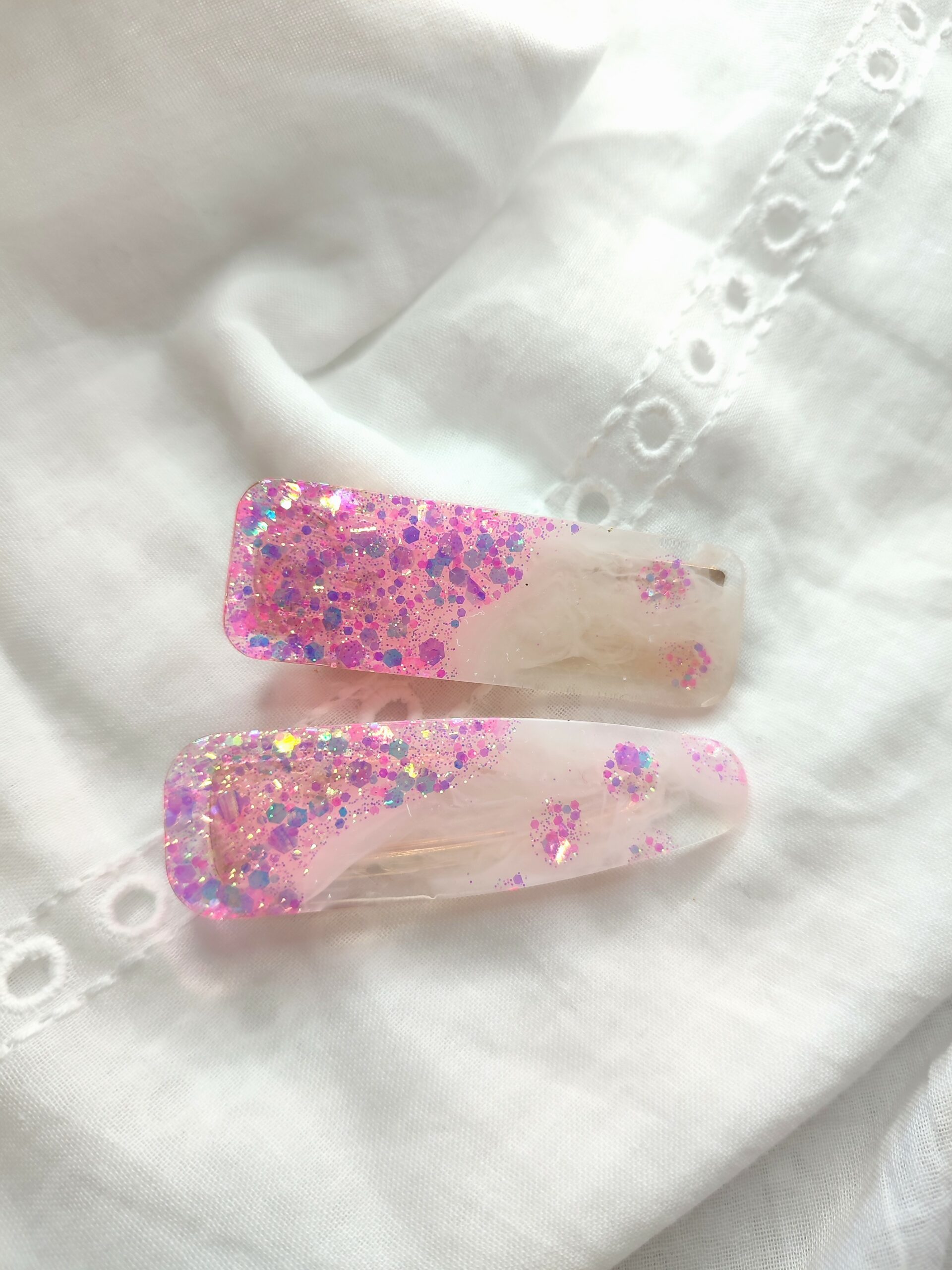 Barrette à paillettes rose holo laiteux en résine pour femme
