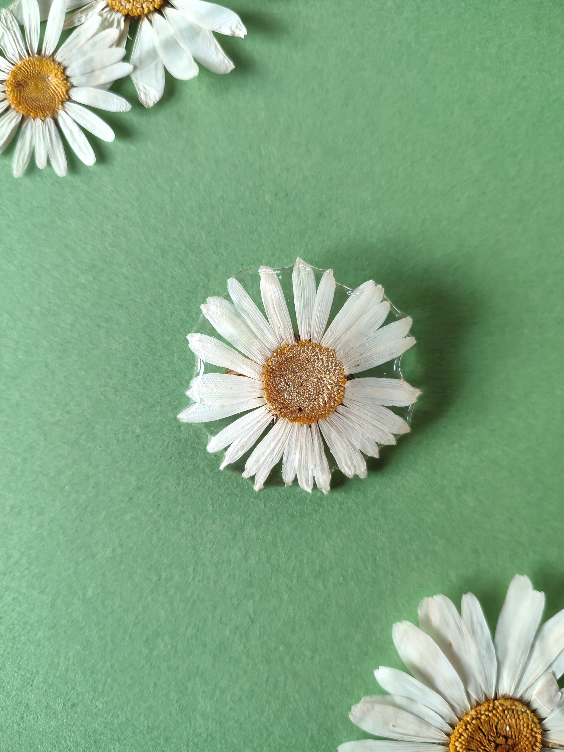 Résine, fleur pressée et feuille d’or